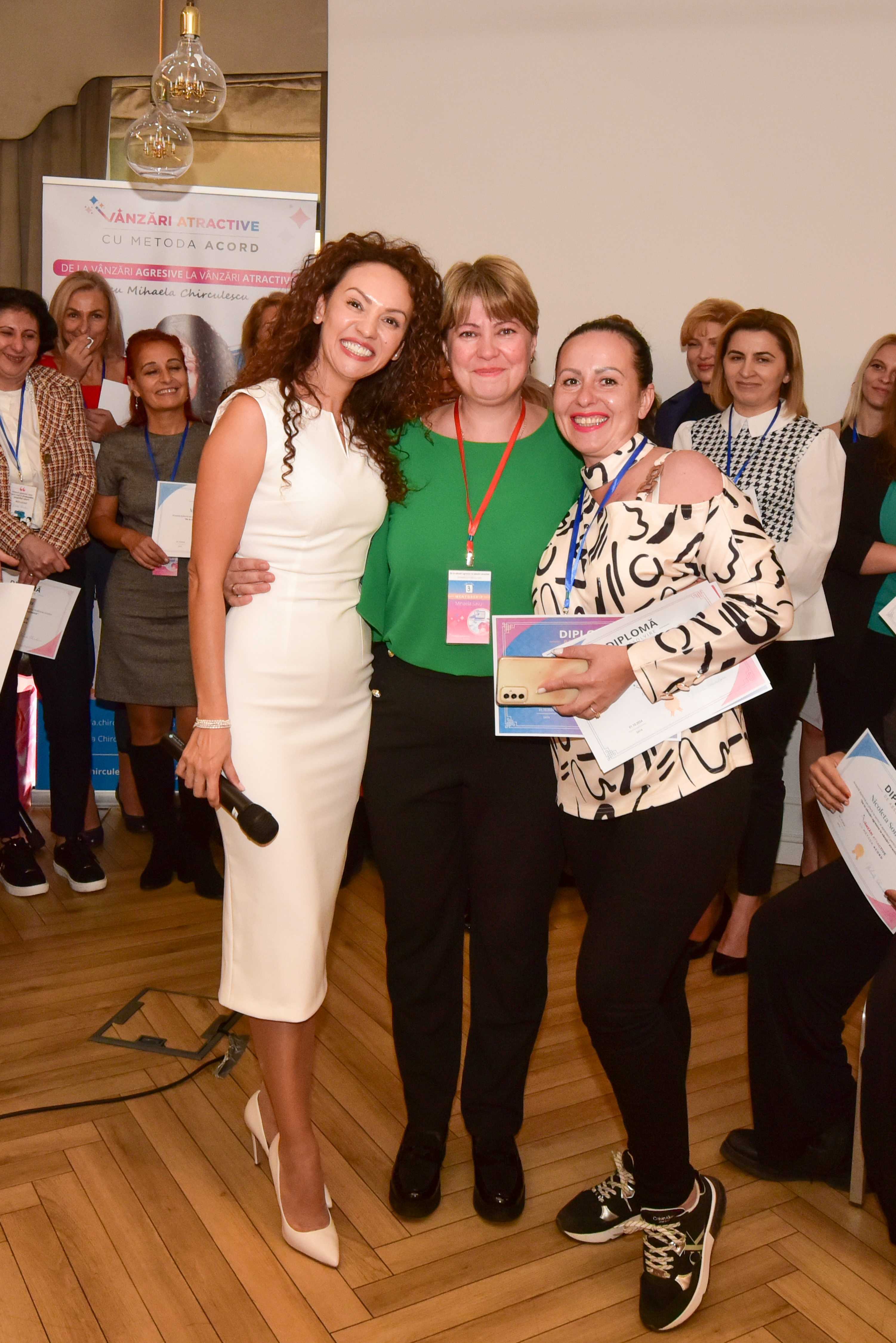 „Nu mi-am imaginat că voi vinde în live-uri, în social media, dar s-a întâmplat alături de Mihaela. Nu mai vindeam aproape deloc când am cunoscut-o. Eram gata să renunț. Am spus că îmi mai dau o șansă și mă bucur enorm că am făcut asta. Totul s-a schimbat. Încrederea mea a crescut. Curajul meu a crescut. Am o echipă frumoasă și cresc din ce în ce mai mult. Prima mea vânzare mare într-un live: 1200 euro, un singur client. A fost fantastic. Am aplicat ceea ce Mihaela m-a învățat și de atunci vând, online și offline, cu succes.”